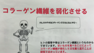 甘いものを多く摂取するとコラーゲン繊維が糖化といって弱くなることが研究で分かっています。